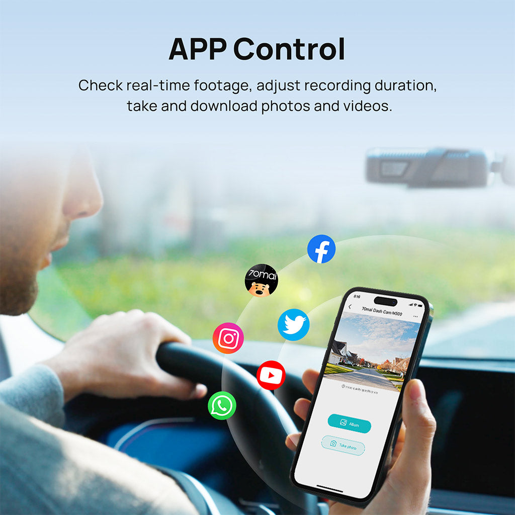 70mai M500 Dash Cam 2.7K HD with Built-in eMMC, 170° FOV & HDR Recording